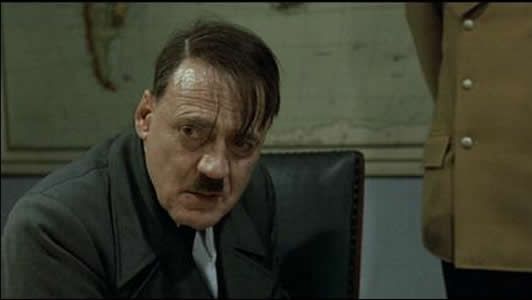 Pewnie wielu już nudzi ta moda, ale ja rzadko kiedy sięgam po filmy z cyklu 'parodia Hitlera', dlatego kiedy już jakiś zobaczę, to wydaje mi się świeży i zabawny. Np. ten poniżej, jest całkiem niezły (poprawność polityczna nakazuje mi przestrzec, że filmik zawiera wulgaryzmy).