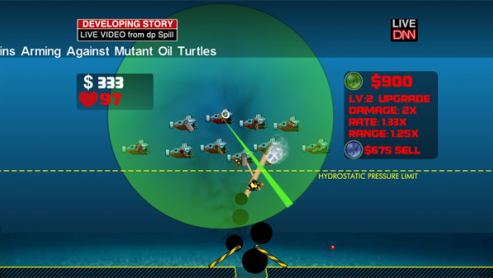 Jest to niezależna gra stworzona przez Super Boise Games (możecie ich znaleźć np. na Twitterze). Twórcy opisują ją jako nowy sposób na opanowanie wycieku ropy. Sposób, którego nikt jeszcze nie próbował - Tower Defense! Okręty zakotwiczone przy wielkiej plamie ostrzeliwują ją dbając o przyszłość ekologiczną planety... i naszą dobrą zabawę. Do wyboru jest kilka stopni trudności opisanych w formie znanego wszystkim fanom ekologii licznika.