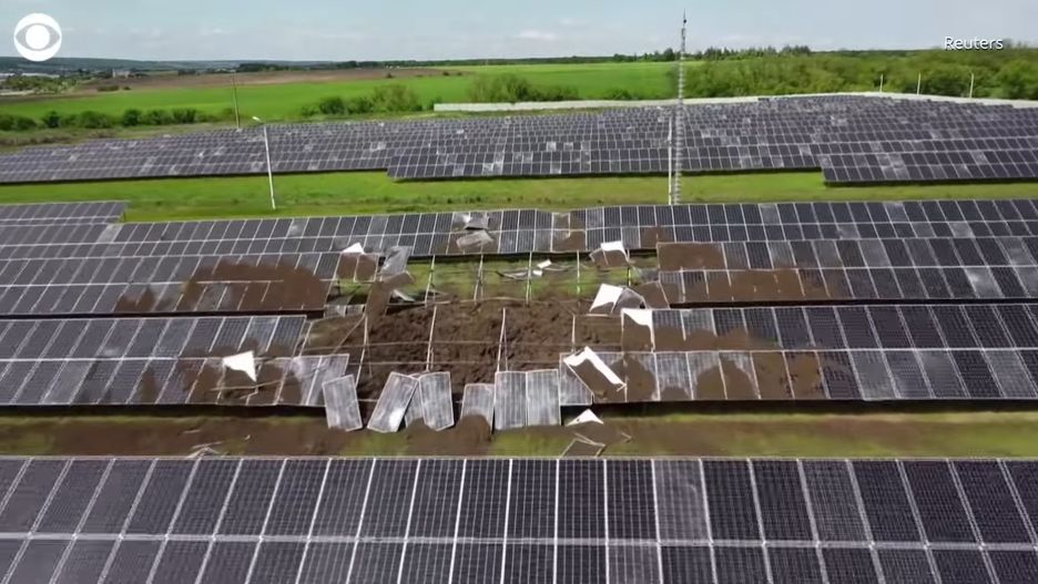 Kamery monitoringu zarejestrowały atak rosyjskiej armii na farmę fotowoltaiczną w mieście Merefa oddalonym o około 30 kilometrów od Charkowa. W obiekt o mocy 3,89 MW trafiły dwie rakiety Iskander, powodując ogromną wyrwę w ziemi o średnicy około 11 metrów i głębokości około 6 metrów.