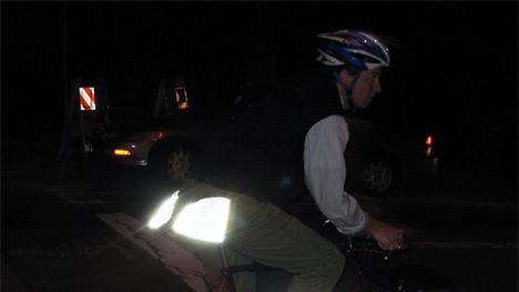 Odblaskowe spodnie, których nogawki i kieszenie po wywinięciu zwiększają powierzchnię odblaskowych przedmiotów na podróżującym. Mijemy nadzieję, że dzięki takim konceptom poprawi się średnia długość życia rowerzystów.