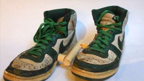 Samochodzące buty zostały wykonane w prosty sposób: połączono je drewnianym trzpieniem, a wewnątrz obuwia zamontowano mały serwomotorek. Efekt? Proszę bardzo: