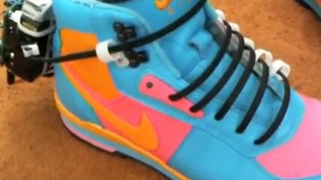 Może elektroniczny układ przyczepiony tuż za kostką nie wygląda elegancko, ale nie to się liczy. Aby patent mógł zadziałać, trzeba było zrezygnować z tradycyjnych sznurówek i zastąpić je plastikowymi zaciskami. Tymi samymi, którymi zaciskacie przewody w komputerach stacjonarnych. Summa summarum, wynalazek działa.