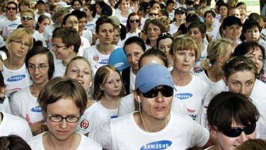 To w zasadzie promocja kampanii edukacyjno-profilaktycznej Różowa wstążka, której celem jest zwrócenie uwagi na problem zachorowalności kobiet na nowotwory piersi, ale przy okazji również reklama i prezentacja produktów Koreańczyków. Drogie Panie, macie ochotę się przebiec i sprawdzić telewizory 3D?