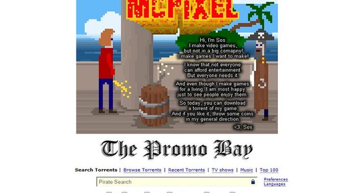 Do teraz pamiętam o McPixel, polskiej grze niezależnego twórcy Sosa Sosnowskiego. Ale wiecie co? Nie wiem, o czym ta gra jest. Nie wiem nawet, czy jest fajna. Czytając artykuły o nim dowiedziałem się tylko o tym, że piracki serwis zrobił mu kampanię promocyjną, dzięki której pobrało się mnóstwo kopii.