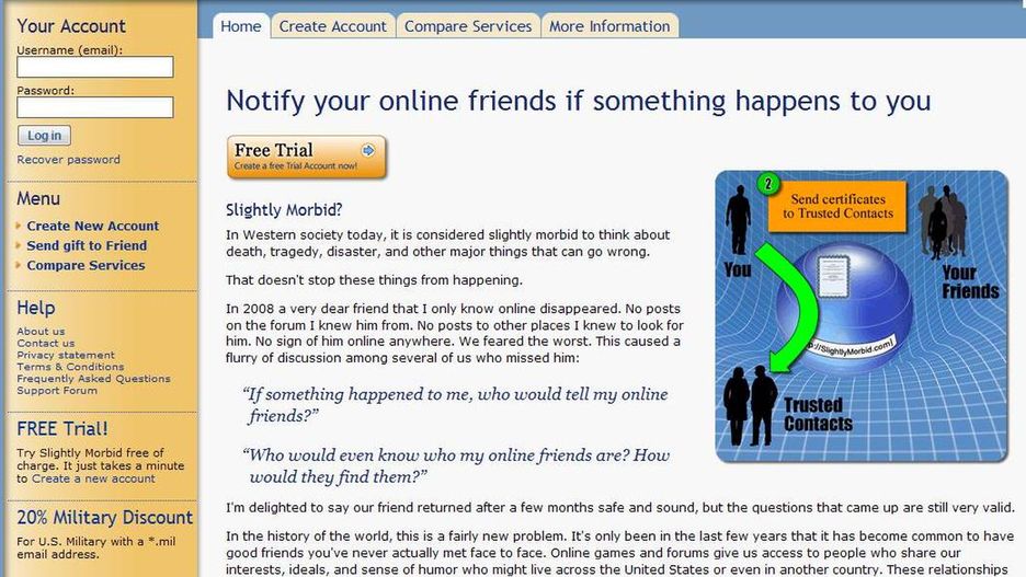 Niektórzy jednak ufają takim serwisom jak, Deathswitch czy Slightly Morbid. Mają one za zadanie regularnie sprawdzać aktywność użytkownika. Jeśli po określonym czasie nie będzie od niego żadnego odzewu, uznają one użytkownika za zmarłego i wyślą przygotowane przez niego wcześniej maile.