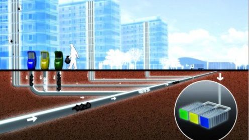 Wyobraźcie sobie utopijną, jak na razie, sytuację: wyrzucacie śmieci do pojemnika, a one natychmiast znikają w czeluściach podziemnych rur, wędrując na przenośniku taśmowym wprost do kontenera zbiorczego. Żadnych odorów - dzięki zamontowaniu specjalnych filtrów; żadnych walających się odpadów wokół przeładowanego śmietnika; żadnych zatruwających środowisko śmieciarek na czterech kółkach...