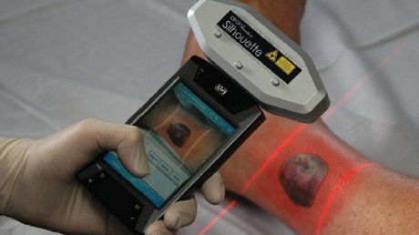 Do tej pory leczenie ran skóry opierało się na obserwacji wzrokowej jej zmian przez lekarza. To już jednak przeszłość. Oto Silhouette Mobile firmy ARANZ Medical. Przenośna kamera za 6000 dolarów, którą można wygodnie sprawdzać stan skóry pacjenta. Kamera „patrzy” zarówno na powierzchnię skóry jak i zagląda pod nią. Szybki skan zranionego miejsca pozwala nie tylko określić długość i szerokość rany, ale także jej głębokość. Wszystko bezdotykowo.