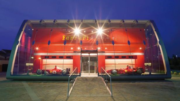 We włoskim mieście Serravalle Scrivia stoi firmowy sklep Ferrari. Mimo, że jest sklepem sieciowym jest wyjątkowy z kilku powodów. Jest jedynym sklepem sieci o całkowicie samodzielnej bryle. Jego projektantem jest jeden z najwybitniejszych współczesnych włoskich architektów, współtwórca dwóch awangardowych kierunków w architekturze i wzornictwie – bolidyzmu i ruchu Memphis.