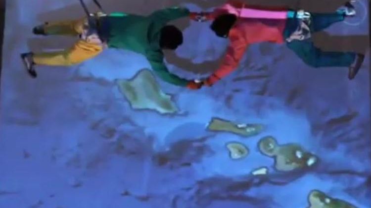 Japończycy wynaleźli nowy sposób na uprawianie skydivingu pod dachem. Potrzeba do tego projektora, laptopa/komputera ze zdjęciami satelitarnymi oraz odpowiedniego nastroju (w tym przypadku ładne dekoracje z namalowanymi chmurkami). Niezbędne będzie także założenie uprzęży. A potem? Zobaczcie sami.