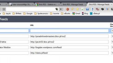 Rozszerzenie instaluje się w pasku narzędziowym. Po kliknięciu ikony musimy przejść do edycji źródeł (przycisk Manage i w polach podać nazwy i adresy kanałów RSS. W opcjach rozszerzenia możesz dokonać importu już posiadanych źródeł, wklejając treść pliku OPML wyeksportowanego z jakiegoś innego czytnika, np. Google Readera.