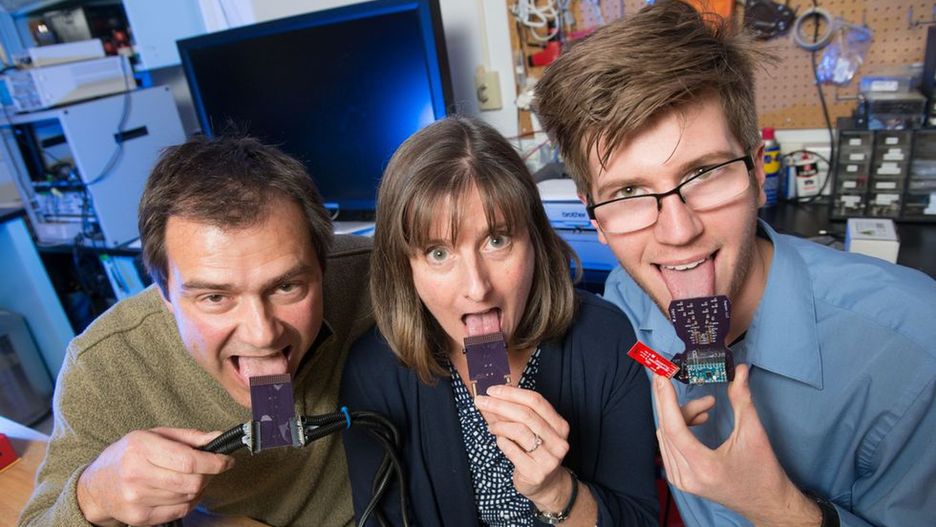 Zespół, kierowany przez doktora Johna Williamsa podszedł do problemu zupełnie inaczej i w ogóle pominął w całym procesie nerw słuchowy. W ich przypadku dźwięk jest zamieniany na impulsy, które są następnie przekazywane do układu nerwowego przy pomocy… języka użytkownika. Jest to możliwe dzięki nakładce, która w zależności od aktualnie transmitowanego dźwięku w różny sposób podrażnia powierzchnię języka przy pomocy słabego prądu.