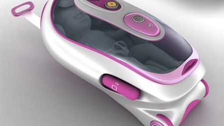 Maluszka umieszczamy w środku po otworzeniu przezroczystej klapy. Po jej zamknięciu, nadal mamy dostęp do dziecka poprzez mniejszy otwór umieszczony na wysokości twarzy bobasa. Głowa malucha spoczywa na specjalnie wyprofilowanych poduszkach wypełnionych płynem. Dzięki temu, mamy pewność że maluch zachowa stabilną i bezpieczną pozycje podczas jazdy. Dodatkowo, w górnej części wózka znajduje się ekran LCD, na którym wyświetlany jest obraz z kamerki – kontakt wzrokowy z rodzicami jest bardzo istotny.