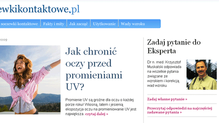 SoczewkiKontaktowe.pl zawiera sporo ciekawych informacji nie tylko na temat soczewek, ale też samego wzroku, jego wad - i ciekawostki na temat "kontaktów". Co tydzień można też znaleźć odpowiedzi na zadawane przez czytelników pytania - bądź samemu takie zadać i poczekać na odpowiedź eksperta, doktora Krzysztofa Muskalskiego.