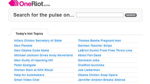 OneRiot wyszukuje informacje w oparciu o zachowanie prawie dwóch milionów osób, które korzysta z odpowiedniego pluginu i jak to poetycko określili twórcy serwisu - szukają pulsu internetu. Teoretycznie więc, wyniki przedstawione przez wyszukiwarkę powinny w jakiś sposób reprezentować najbardziej popularne miejsca w których znajdziemy interesująca nas informację.