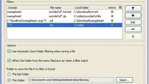 Automatic Save Folder umożliwia określenie zasad wg których pliki będą zapisywane w odpowiednim miejscu. Dopuszczalne kryteria to nazwa domeny z której pobieramy coś, lub format rozszerzenia – dzięki czemu mając na dysku specjalne foldery dla grafik, instalatorów, dokumentów, możemy być pewni, że dany plik trafi do odpowiedniego miejsca, ułatwiając tym samym jego późniejsze odnalezienie.
