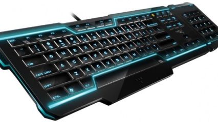 Odpowiada za nie znany producent sprzętu - Razer. Pełen zestaw to klawiatura Razer TRON Gaming Keyboard, myszka Razer TRON Gaming Mouse oraz podkładka pod nią - Razer TRON Gaming Mat. Utrzymane są w ciemnych barwach, z błękitno-niebieskim podświetleniem. Zacznę od klawiatury. Znajdujące się w jej obudowie neonowe światło reaguje migotaniem podczas włączania i wyłączania systemu (Rez i De-Rez), a także uruchamiania aplikacji czy nawet osiągania celów w grach! Klawiatura w tym modelu to chiclet, a co ciekawe - część numeryczną można odłączyć w każdej chwili.