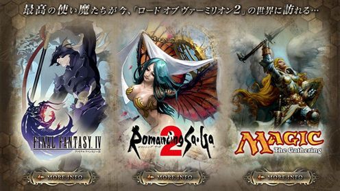Mówiąc konkretnie - chodziło o drugą część gry Lord of Vermilion. Jest to niedostępna w Europie gra karciana na automaty. Szkoda, ale co zrobić. Ciekawe jest jednak to, że grze mają być dostępne postacie z Final Fantasy IV, Magic The Gathering i Romancing Saga 2. Może kiedyś gra trafi na Stary Kontynent, ale to raczej marzenie ściętej głowy.