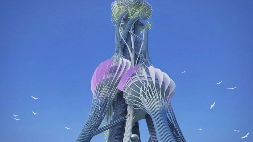 Podstawowym materiałem pnączy byłaby stal. Mimo to wieża miała być na wskroś ekologiczna. A może zamiast używać tego wyświechtanego terminu, napiszę, że przy jej projektowaniu uwzględniono najnowsze trendy w efektywności energetycznej budynków. Wieża somy miała być nie tylko zeroemisyjna (albo zerowęglowa, gdyby posłużyć się ułomnymi tłumaczeniami angielskich terminów), ale także całkowicie samowystarczalna energetycznie.