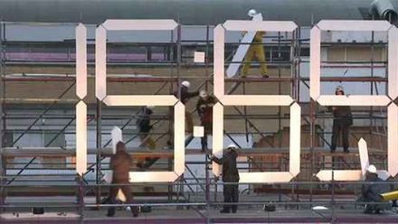 Konstrukcja została postawiona na dworcu centralnym (obsługuje on około 100 000 pasażerów). Całość przypomina plac budowy, zresztą nie mogło być inaczej - w końcu Standard Time jest w ciągłej przebudowie. Cztery wielkie cyfry mają 12 metrów wysokości. Podziwiam determinację i zaangażowanie robotników, którzy zgodzili się na ręczne odmierzanie czasu.
