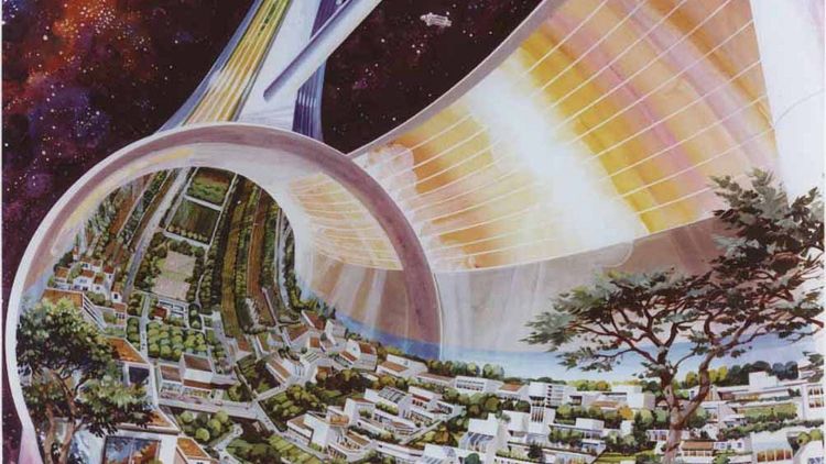 Ilustracje przedstawiają przyszłe kolonie kosmiczne i powstały w latach 70. na zlecenie NASA.
