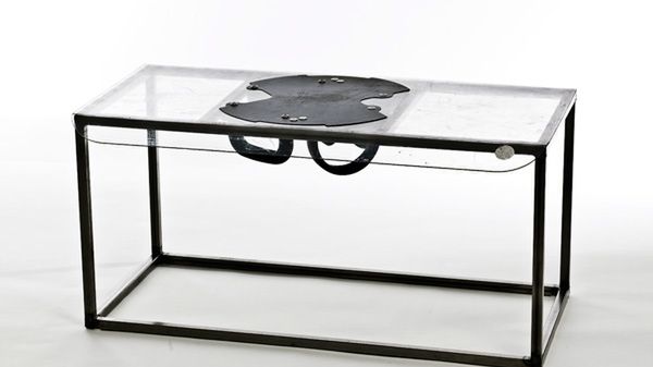Konstrukcja składa się z metalowej ramy oraz blatu wykonanego z przeźroczystego odpornego materiału. Na pierwszy rzut oka nie różni się on niczym specjalnym od innych mebli, jakie można znaleźć w salonie. Wystarczy jednak ściągnąć blat z metalowej ramy i korzystać z niego niczym z tarczy, jaką posługują się oddziały prewencji policji podczas zamieszek.