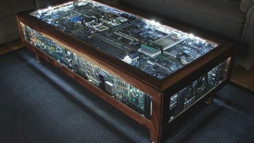 Jeśli macie stare komputery walające się w szafie lub piwnicy, to nie myślcie o ich wyrzucaniu. Lepiej wszystko rozebrać na części i zamienić w stolik. Taki jak powyżej.
