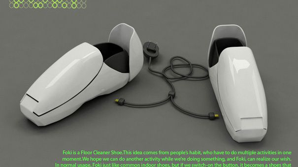 Każdy z butów FOKI wyposażony jest w dwie obrotowe szczoteczki służące do zamiatania kurzu i dezynfekcji podłoża. Specjalny, zintegrowany wyświetlacz LED informuje nas o poziomie bakterii znajdujących się pod naszymi stopami. Wiem, że brzmi to dziwnie, ale jeśli opisywany gadżet może uwolnić mnie od odkurzania mieszkania, to jestem pierwszy w kolejce do zakupu.