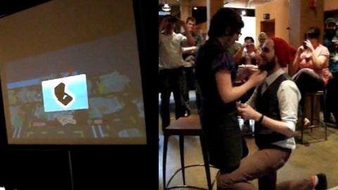 Dopiero co piałem o pięciu przykładach tego jak łatwo i ciekawie oświadczyć się kobiecie lub mężczyźnie za pomocą gry wideo, a już mamy kolejny przykład. Kolega widoczny na fotce powyżej nagrał całe zajście. Film możecie obejrzeć w pełnej wiadomości.