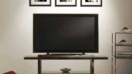 Firma OmniMount proponuje stolik na telewizor HD wykonany z prawdziwego drewna. Oczywiście nie mogło też zabraknąć szkła i chromu.