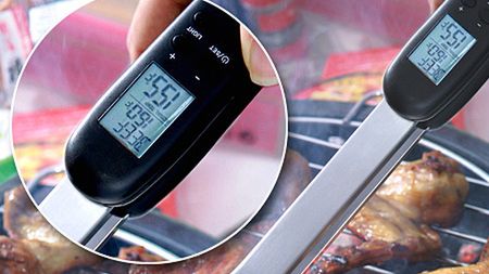 Digital BBQ tong to bardzo praktyczne szczypce do obracania sztuki mięsa na ruszcie. Ich wyjątkowość polega na tym, że zostały wyposażone w czujnik temperatury i wyświetlacz LED. Przy przewracaniu kiełbaski na drugi bok, gadżet poinformuje nas o gotowości jedzenia do spożycia.