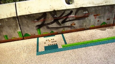 Na Vimeo znalazłem rewelacyjny filmik pokazujący, że przy odrobinie zdolności graficzno-filmowych Super Mario można zobaczyć nawet na chodniku.