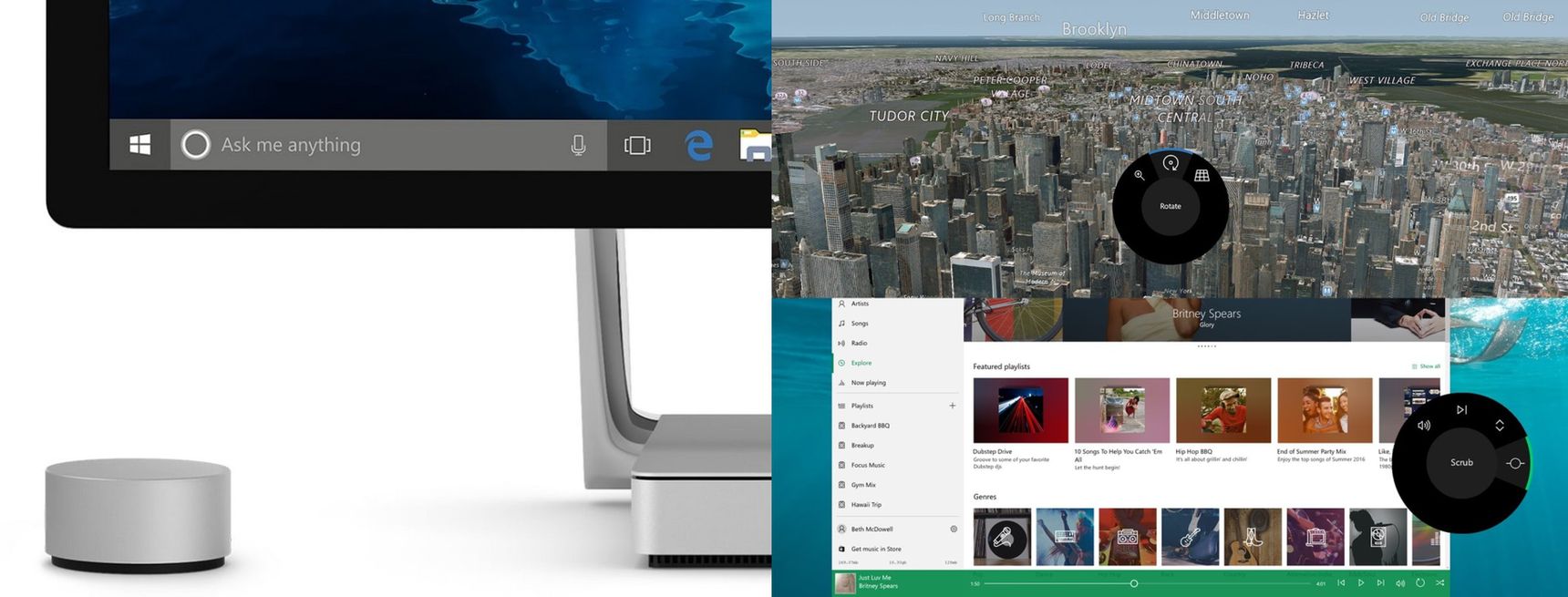 Sprzęt może być parowany również z innymi komputerami z Windowsem 10. Będzie on działać jedynie w trybie stacjonarnym (leżąc np. na biurku), ale obsługiwane funkcje wciąż będą zmieniać się kontekstowo. Słuchając muzyki w Spotify można będzie za pomocą Surface Dial zmieniać poziom głośności, a przekręcenie go na ekranie głównym zmniejszy/zwiększy jasność monitora.
