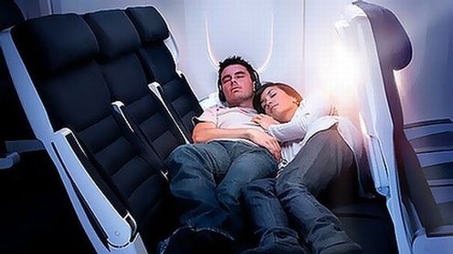 Otóż jeśli podróżujesz w duecie, problemu nie ma. A co jeśli podróżujesz w pojedynkę? Jeśli będziesz chciał się wygodnie przespać, będziesz musiał zgodzić się na to, aby dzielić kanapę z nieznajomym. Air New Zealand, zanim zdecydowały się na wprowadzenie usługi (która według zapowiedzi ma być dostępna od listopada 2010r, najpierw na trasie Auckland – Londyn, przez Los Angeles), przeprowadziło ankietę wśród pasażerów pytając ich o to, czy byliby skłonni zapłacić dodatkową cenę za trzecie miejsce. 25% badanych zdecydowanie nie jest zainteresowanych takim rozwiązaniem – podróżują klasą ekonomiczną po to, aby zaoszczędzić. 73% badanych uznało to jednak za dobry pomysł. Co ciekawe, aż 13% respondentów nie miałoby nic przeciwko temu, by spać z zupełnie obcą sobie osobą, poznaną na lotnisku. Ciekawe, czy taka forma przelotu mogłaby stać się czymś w rodzaju randki w ciemno? Jeśli trafiłby Ci się wysoki partner, to przez wzgląd na długość kanapy, pozostaje jedynie spanie „na łyżeczkę”.