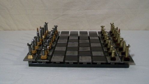 Prezentowaliśmy na łamach Gadżetomanii różne pomysłowe szachy, jednak takich jeszcze nie było. Wszystkie figury to łuski nabojów, a sama szachownica jest wykonana z łuski pocisku kaliber .223. Ich nazwa to Shell Bullet. Niestety, cena jest dość mordercza - 510 dolarów + wysyłka.