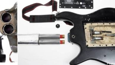 Kolekcja obejmowała skróconą dubeltówkę, pistolet maszynowy domowej roboty, karabin Mauser, dwa rewolwery i laskę przerobioną na strzelbę. Najciekawszym znaleziskiem była jednak gitara, w której wnętrzu znajdowały się dwie lufy od shotguna oraz zaczątek mechanizmu spustowego. Jak stwierdził właściciel tego arsenału: