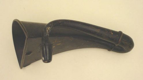 Według Skroska przyrząd, którego używa nagrana kobieta, to tuba dla niedosłyszących pochodząca z końca XIX wieku.
