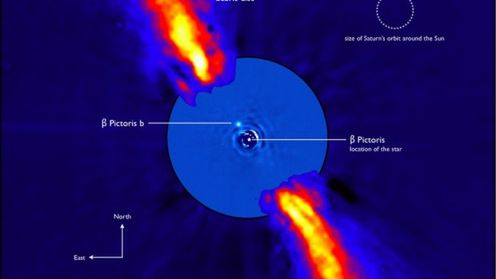 Do historii przejdzie informacja, że pierwszym widzianym pozasłonecznym globem jest Beta Pictoris b. Zaobserwowali go astronomowie z European Southern Observatory, zaś udało się to dzięki teleskopowi VLT (Very Large Telescope), który znajduje się w Chile. Zważywszy, że planeta ma masę dziewięciokrotnie większą od Jowisza, naukowcy mieli z górki ;) Beta Pictoris b krąży wokół młodej gwiazdy zwącej się - nie zgadniecie - Beta Pictoris. Powstała ona zaledwie 12 milinów lat temu, co w skali kosmicznej jest mgnieniem oka. Ba, wciąż otaczają ją resztki gazów i pyłów, z których powstała.
