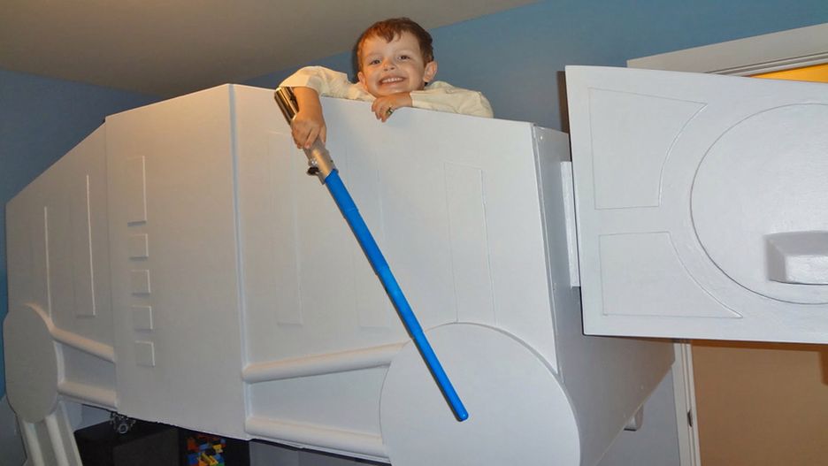 Derek Dutilly swoją ojcowską miłość i pasję do gwiezdnej sagi postanowił przemienić w niezwykłe łóżko piętrowe. Wykonany ze sklejki mebel przypomina znany z "Imperium Kontratakuje" transporter opancerzony AT-AT. Budowa łóżka trwała sześć i pół miesiąca, a Derek poświęcił na nią w sumie 60 godzin, efekty jego pracy są jednak bezcenne.