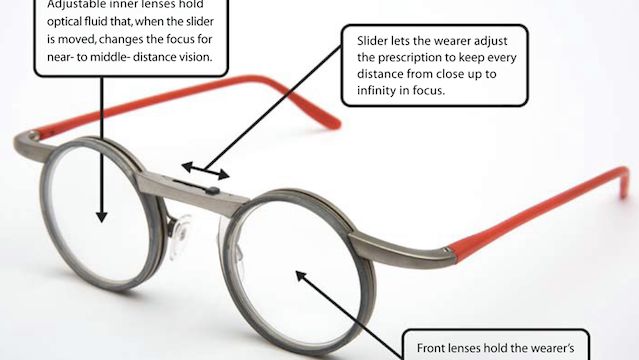 Okulary, w które wyposażono astronautów z promu Discovery, mogą być używane zarówno przez krótko-, jak i dalekowidzów. Jest to możliwe dzięki płynowi, który znajduje się pomiędzy soczewkami. Aby dostosować okulary do potrzeb, wystarczy użyć suwaka umieszczonego nad częścią nosową.