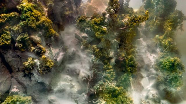 Autorem niezwykłych krajobrazów jest Kim Keever. Fotograf tworzy swoje miniaturowe światy wewnątrz dużego akwarium. Następnie zbiornik napełnia wodą i uzupełnia o ręcznie malowane tło. Chmury i mgła powstają z barwników wlanych do wnętrza akwarium i sfotografowanych przed całkowitym rozpuszczeniem, a efekt różnych pór dnia uzyskiwany jest dzięki kolorowemu podświetleniu.