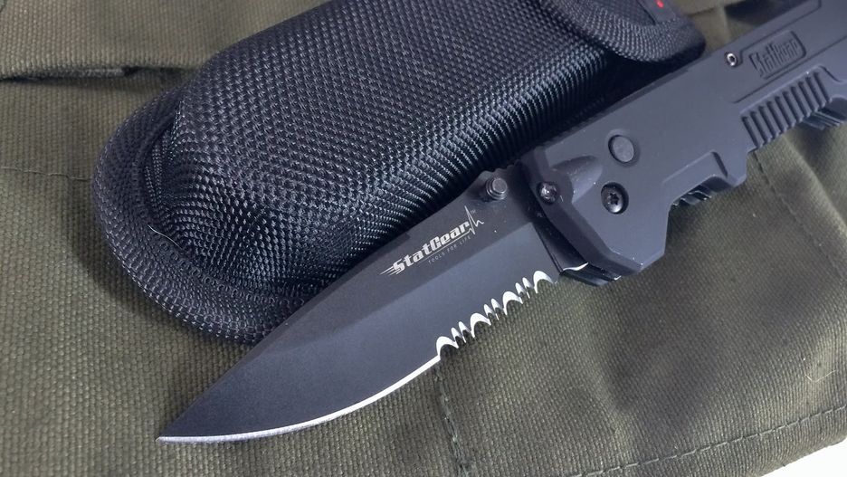 Nóż ratownicy firmy Shrade to przykład połączenia ciekawego wzornictwa z przemyślaną konstrukcją i przydatnymi funkcjami. Jest to nóż z tzw. wspomaganiem otwierania - po pociągnięciu flipera (to występ na ostrzu, ułatwiający otwieranie noża jednym palcem) lub wypchnięciu umieszczonego na ostrzu kołka wewnętrzna sprężyna samoczynnie otworzy blokowane ostrze.