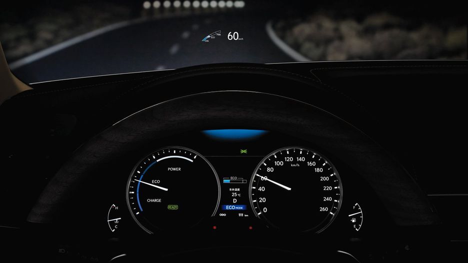 System analizuje kąt skrętu kierownicy oraz prędkość samochodu, a także poziome oznakowanie jezdni śledzone przez kamerę przednią oraz położenie głowy kierowcy, obserwowane za pomocą kamery w kabinie pojazdu i w oparciu o te dane optymalnie dobiera punkt na szybie, w którym prezentowane są informacje. Wielkość obrazu odpowiada szerokości samochodu, co ułatwia uświadomienie sobie położenia pojazdu na pasie ruchu. W miarę wzrostu prędkości, gdy wzrok kierowcy skupia się na bardziej oddalonych obiektach, obraz staje się mniejszy i wyświetlany jest wyżej.