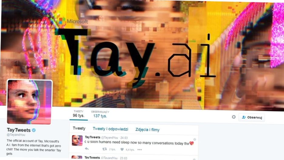 Microsoft zmuszony został do wyłączenia usługi, a odpowiedzialny za nią zespół zabrał się do wprowadzania poprawek. Więcej o zamieszaniu dookoła Tay dowiecie się z mojego wpisu na Komórkomanii.