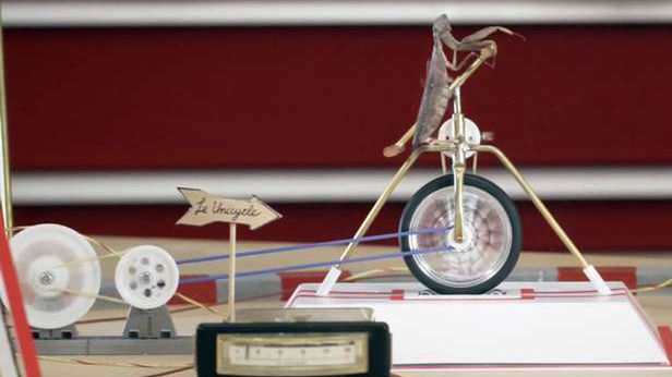 Modliszka pedałująca na monocyklu, pająk na bieżni czy skorpion z trudem obracający przeciwwagi to widok niesamowity, tym bardziej że ich praca nie idzie na marne. Korzystając z przygotowanych specjalnie dla nich sprzętów, owady produkują przy okazji prąd zasilający leżący w pobliżu telefon.