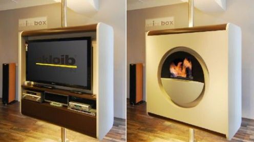Ciekawy pomysł, oszczędzający trochę miejsca, ale czy ktokolwiek z Was odważyłby się umieścić telewizor za kominkiem? Chyba, że producent ma na myśli imitację ognia wyświetlaną na drugim ekranie. Tylko w takim przypadku bo jakiego diabła w ogóle męczyć się z obrotową konstrukcją? Wystarczy kupić płytę Blu-ray z kominkiem w wysokiej rozdzielczości i ustawić automatyczne wyłączenie telewizora na środek nocy.