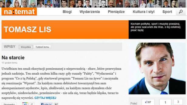 W środę zadebiutował naTemat.pl, zapowiadany na początku listopada serwis blogowy Tomasza Lisa. Plany były bardzo ambitne - stworzenie polskiego odpowiednika The Huffington Post. Teraz możemy się w końcu przekonać, co wcześniejsze zapowiedzi oznaczają w praktyce.