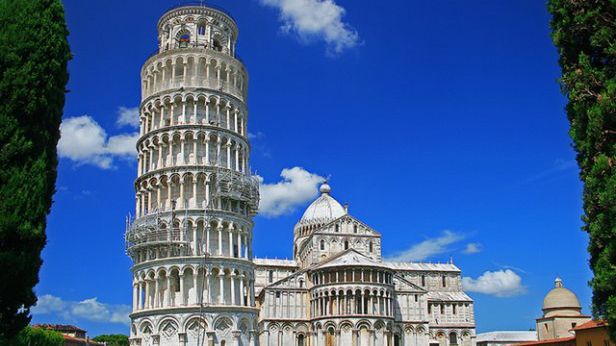 Na rozgrzewkę zacznę od jednej z najbardziej rozpoznawalnych budowli na świecie. Wieża jest tak naprawdę romańską dzwonnicą, która stanowi część kompleksu katedralnego. Pierwsze problemy pojawiły się niedługo po rozpoczęciu budowy w 1174 roku. Odchylanie się wieży próbowano korygować w trakcie wznoszenia kolejnych kondygnacji. Nie zważając na niebezpieczeństwo zawalenia, w 1350 roku na szczycie umieszczono dzwony. W 1600 Galileusz miał wykonać na niej swój sławny eksperyment, udowadniając, że ciała opadają z tą samą prędkością niezależnie od masy.