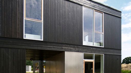 - Tegnestuen Vandkunsten, duńska firma architektoniczna proponuje klientom rozwiązanie w surowym, skandynawskim stylu. Przypominające styl z IKEA budynki są wykonane z kwadratowych elementów drewnianych (każdy prefabrykat ma wymiary 5,2 m x 5,2 m) oraz prostokątnych aluminiowych, łączonych z wielkimi oknami. Fasady pomalowane na ciemny kolor mają sprzyjać kumulowaniu ciepła w pomieszczeniach.