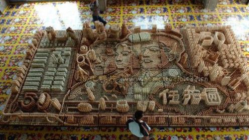 Konstrukcja uwieczniona na fotografii wymagała prawdziwie benedyktyńskiej cierpliwości w układaniu. I odwagi sapera - surowe jajko bardziej podobne jest niewybuchowi niżeli kości domina i jak spada, to wiadomo, co się dzieje...