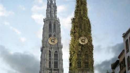 - Zielona wieża katedry w Antwerpii - to przykład na to, jak nowoczesne technologie mogą zmienić wygląd nie tylko samej budowli (w tym konkretnym przypadku - jednej z najwyższych na świecie o charakterze sakralnym), ale i wygląd miasta. Katedrę zaczęto budować w XIV wieku. Proces ten trwał, bagatela, 200 lat. Zakończył się po wielkim pożarze, wraz z wyczerpaniem funduszy - co zaowocowało dość nietypowym wyglądem kościoła, który do dziś ma jedną wieżę strzelistą, a drugą - dużo niższą. Miasto postanowiło po prawie 500 latach dobudować brakujący fragment wieży. I tak na ogłoszony w tym celu konkurs przygotowany został projekt, który - pomimo zastosowania nowoczesnych technologii - ma wielkie szanse doczekać się realizacji. Zewnętrzne ściany dobudowywanej wieży mają być pokryte żywym, zielonym kobiercem, nawadnianym dzięki wodzie deszczowej magazynowanej w zbiorniku sprytnie wbudowanym w budowlę. Dzięki zaopatrzeniu wieży w system z elastycznymi panelami solarnymi, zebrana energia słońca wykorzystana zostanie do zasilenia systemu nawadniającego. W tym projekcie podoba mi się rzecz jedna (pomijając już samą innowacyjność pomysłu): mianowicie to, że na jego widok żaden konserwator zabytków z Antwerpii nie podniósł alarmu, iż realizacja tego konceptu zagrozić może starej części budowli.